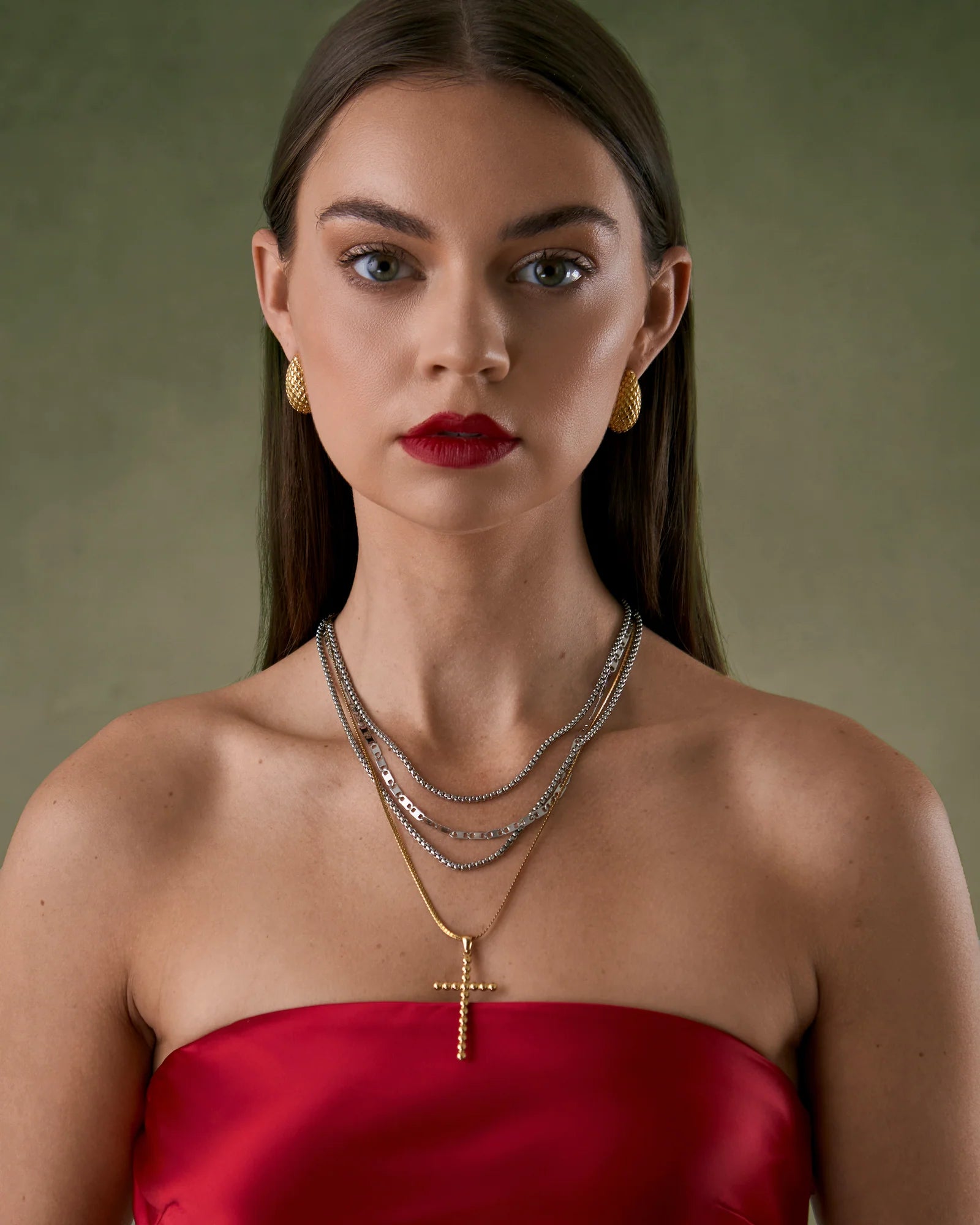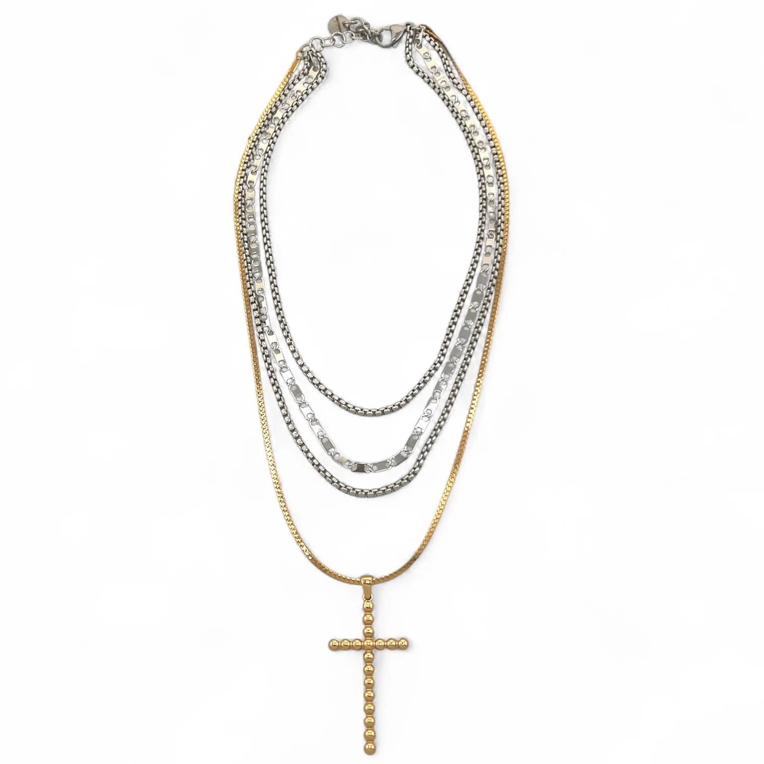 16 inch multi layer chain s/s and gold plated with 2 inch gold cross pendant