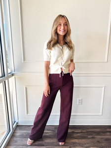 Diana Wide Leg Burgundy Pant by Lucy Paris