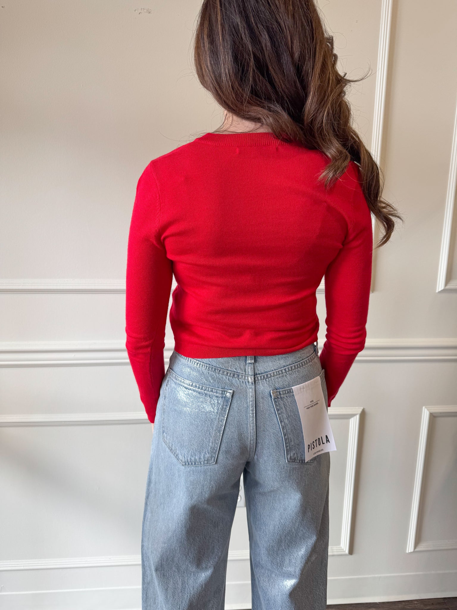Cute, cropped, and festive. This bright red cardigan brings the perfect pop of color to your holiday wardrobe. Great with denim, mini skirts, and layers. Not too heavy — easy to style year-round.