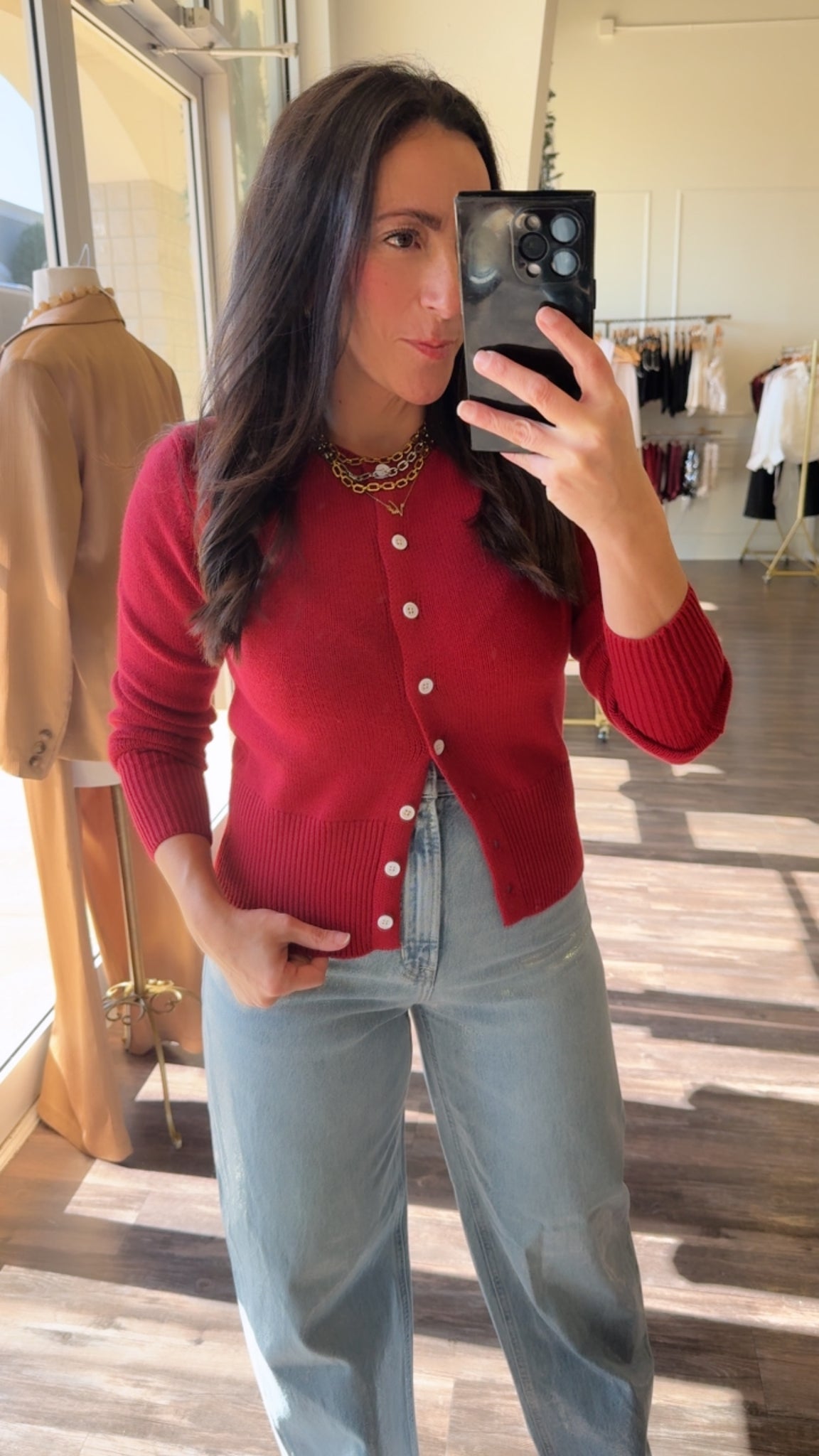 A deeper, timeless shade of holiday red. The Berry Bright Cardigan features ultra-soft knit, full button front, and a flattering slim fit. A classic piece you’ll style all season long.