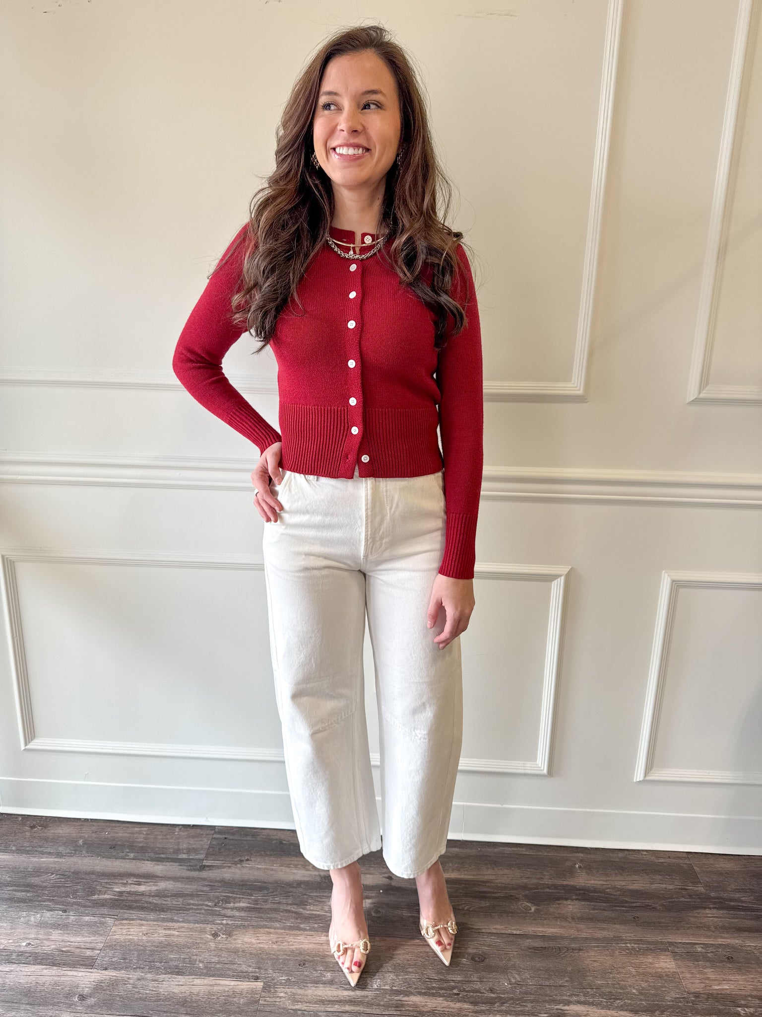 crimson cardigan, red button cardigan, Christmas cardigan, winter knit cardiga
