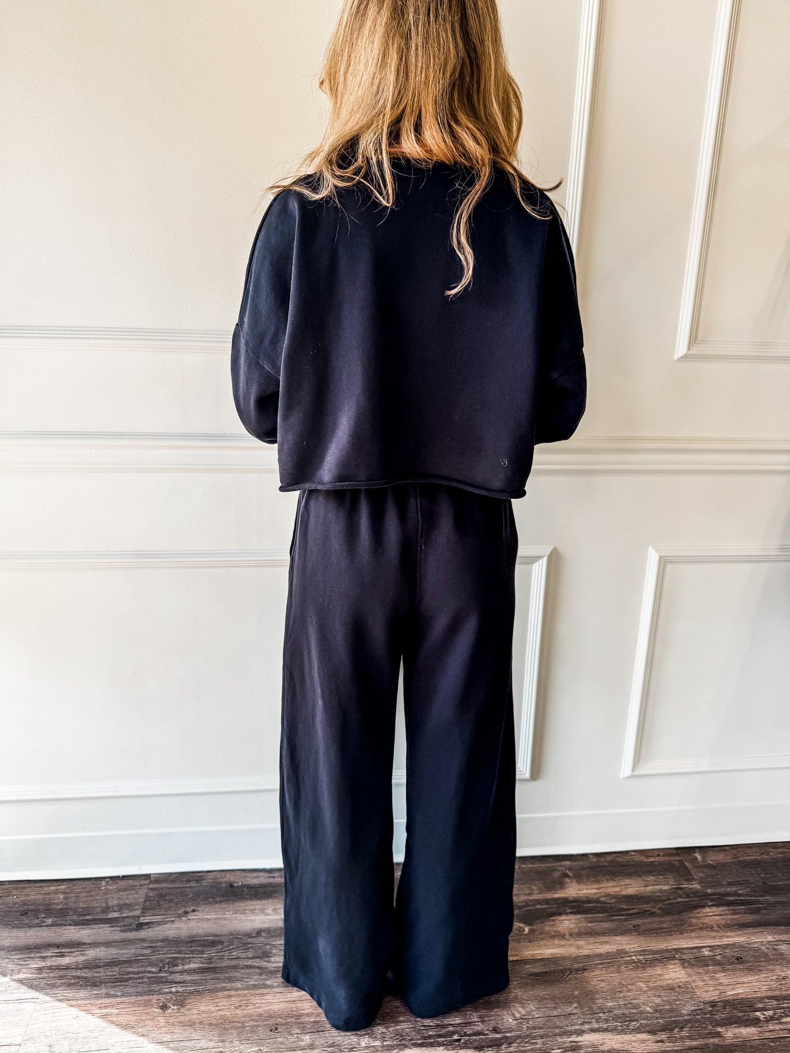 Meet your new wear-everywhere cozy set. This ultra-soft two-piece features a relaxed cropped pullover and wide-leg drawstring pant, giving you the perfect blend of comfort and chic. Lightweight, breathable, and effortlessly flattering — it’s your go-to for school drop-off, errands, travel days, or lounging in style.